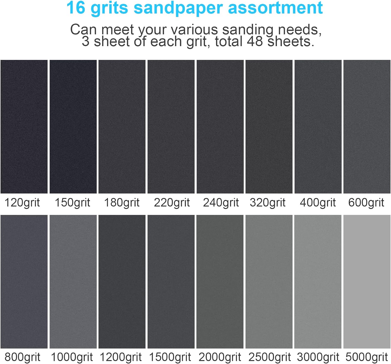 Sand Paper, 48 PCS Sandpaper, 120 to 5000 Assorted Grit Sandpaper Sheets, 9 x 3.6 Inch Premium Wet Dry Sandpaper for Wood Furniture Finishing, Metal Sanding, Automotive Polishing